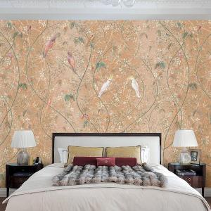 Бесшовные обои и панно, Попугаи на бежевом фоне